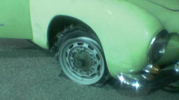 Just as we pulled off the Interstate at our exit, we realized we had a flat tire on the race car!