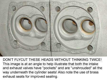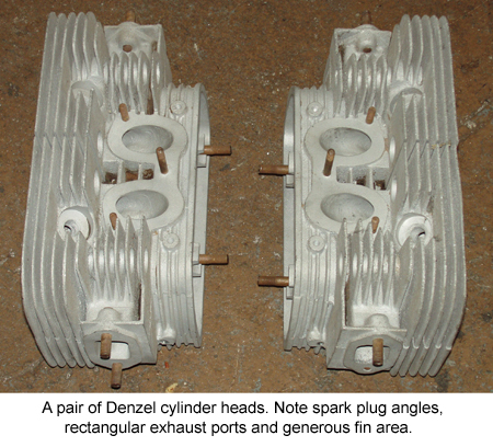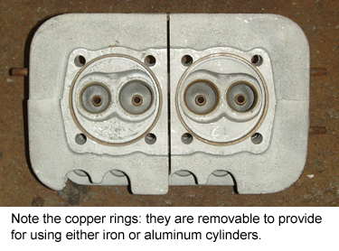 These first images are each of the several pair rather randomly as we just wanted to show Denzel head features. And, actually, they were pairs. The ones at right had no copper rings but you can note the broken off exhaust stud in one port - we didn't use this pair. The head below has copper rings for iron cylinders and we didn't use that pair either.
