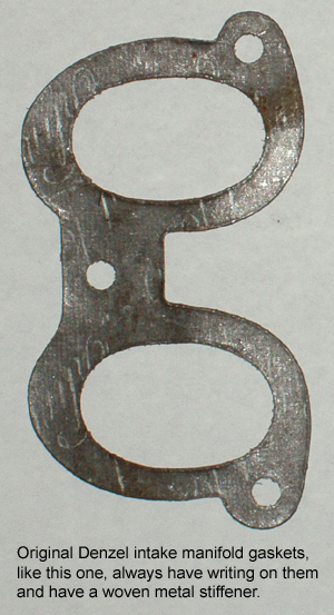 Here, we've hand fitted a gasket to the bottom of the intake manifold. Note that the gasket is precisely made; after fitting to the manifold, the gasket is then fitted to the head. Each gasket is then position specific!