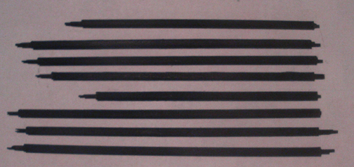 These black things are out-of-focus wooden dowels that Denzel put inside the pushrods - and which we removed! The purpose of these was to keep the delay time for oil pressure to build to a minimum - by taking up volume inside the pushrod, which moves oil up to the valve rocker shafts, and from there, the valve stems. When in service, however, these wooden pieces break apart (note how they're all different lengths), and clog the tips of the pushrods, thereby ensuring that _no_ oil gets to the heads! You have to take the pushrods apart to get these out! And, they're a press fit. Note that both VW and Porsche did the same thing, so it wasn't just Denzel being stupid - they all were rather daft on this one! (The camera just refused to focus on these, sorry!)