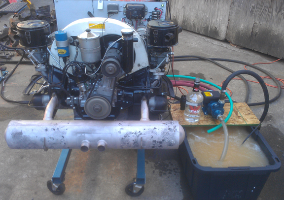 The first major upgrade, at the advice of Stuska Corp, was to open up more water ports to double the capacity of the brake, and provide a dedicated pump capable of flowing enough water to support 600hp. This, coupled with a radiator from a (railroad) locomotive engine, makes it possible for this dynamometer to handle the horsepower from most any air-cooled VW or Porsche engine ever sold.