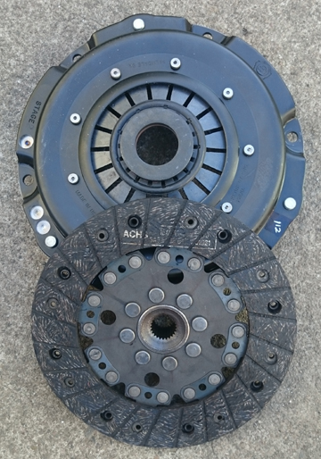 AT RIGHT: Once again, the pressure plate, but this time with its friction disk, a "fixed type" Sachs brand (OEM).
