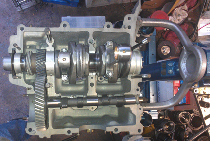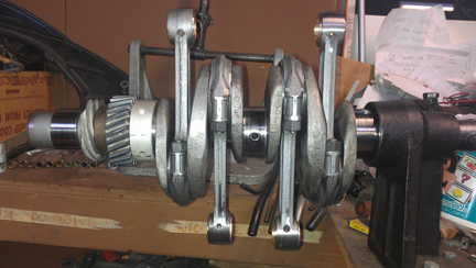 RIGHT: Here the crankshaft is fully assembled with the third main bearing,