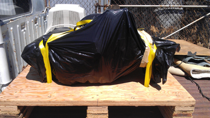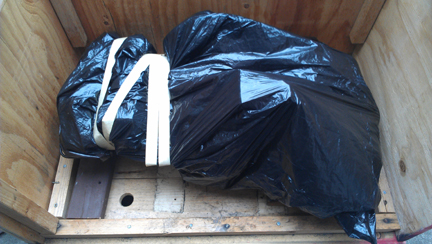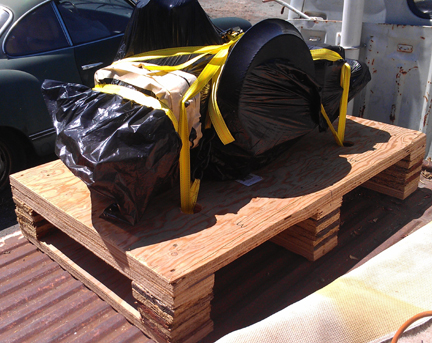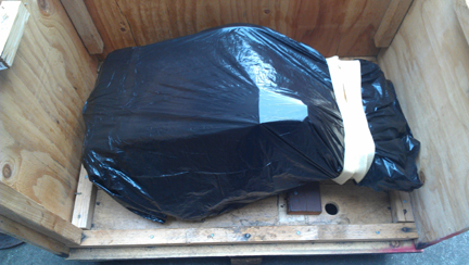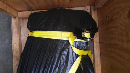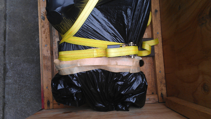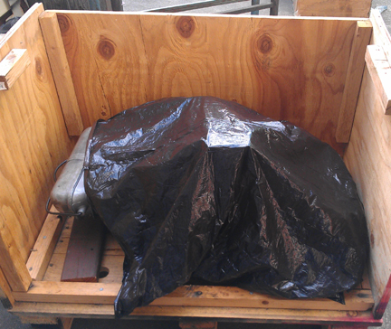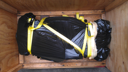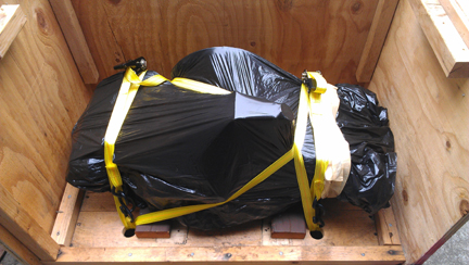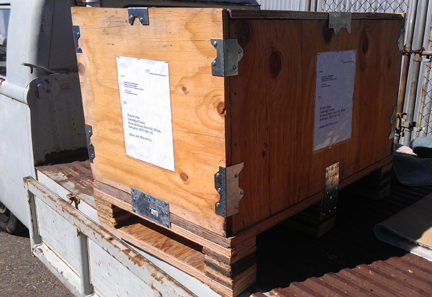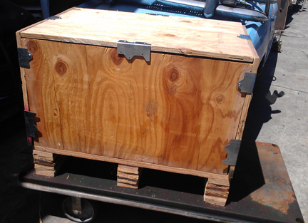 In the following images, the crate construction is shown, which may be of some interest to folks, and then loading it up for its trip to SFO (the airport of San Francisco) for loading into an aircraft, then on to Europe.