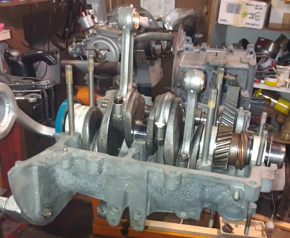 What we have here, at right, is called a "short block," even though we don't have "blocks" for our engines - they're crankcases!