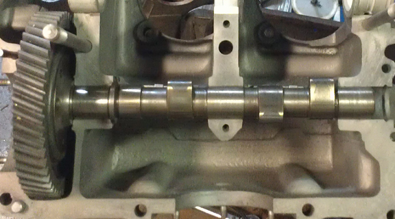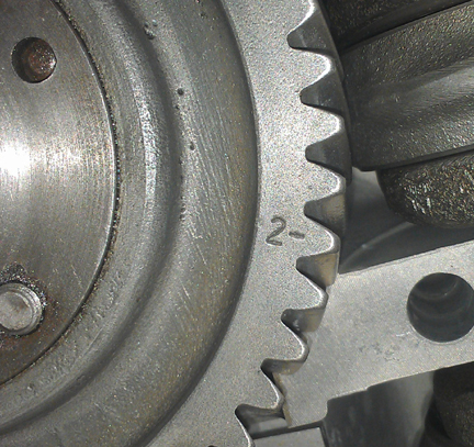 this point, the camshaft's mating to the crankshaft timing gear is evaluated.