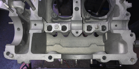 NOTE: In the image above, the weird looking thing inside the crankshaft bore is actually the weld holding the engine stand's arms to the stand's central tube!