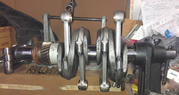 I then pulled out a set of already rebuilt rods, mounted the crank in the crankshaft stand and installed the rods.