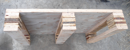 I then cut 6 four inch wide strips of the one inch plywood and sandwitched the just made cubes, gluing and screwing it all together into three runners, and then I screwed these to the 1" thick plywood base I'd cut out: