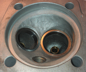 Normally I don't take the time to show such things, but every piece here had to be made just for these heads, so I thought I'd show off what a great job was done in making the seats. Please note in the image below just how perfectly the seats fit, both intake and exhaust, regarding matching the inside diameter on the bottom side of the seat, and in matching the height exactly. They're also centered perfectly - as centered as Porsche did originally!