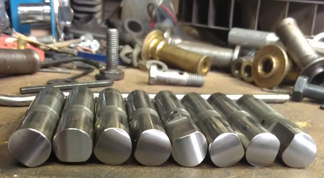 The rocker gear was all thoroughly cleaned and the contact surfaces refaced. Here you can see the latest batch of them done and ready for installation - and a few spare bits, too! (I have extra bits for barter.)