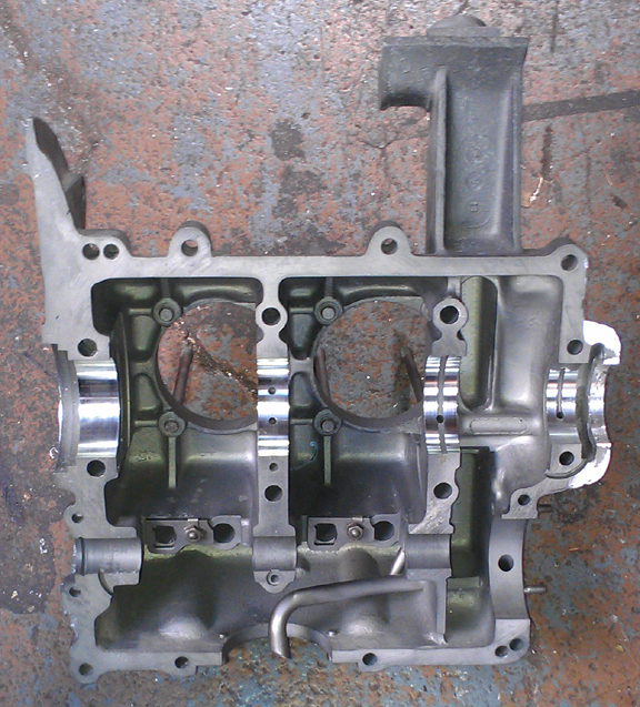 anyway. Here you can see the freshly bored crankcase - or, the right half at