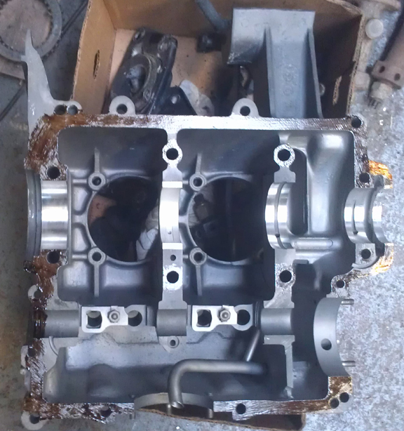 get the crankcase clean! Eventually I got it clean enough to media-blast and