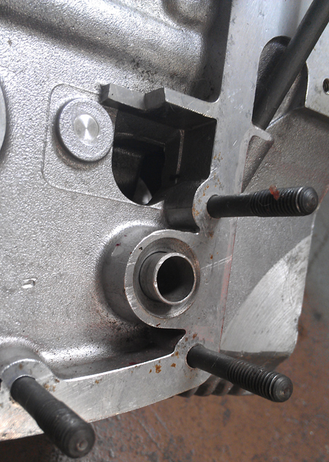 Unfortunately, when the time came, I forgot to take a picture of this! But here it is on a later crankcase, so you can see what it's all about - imagine this bevel on the 3rd piece side and there you have it!