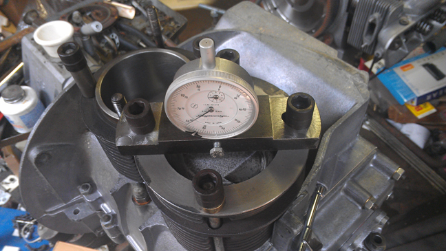 And here's an image of checking how far each piston protrudes from its cylinder. (For the sharp-eyed, yes, this is a different engine being checked - the images above and below just shows the tools and the process used.)