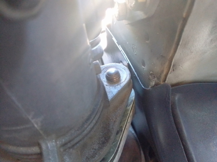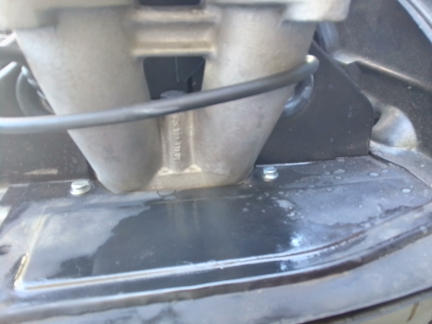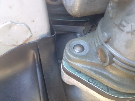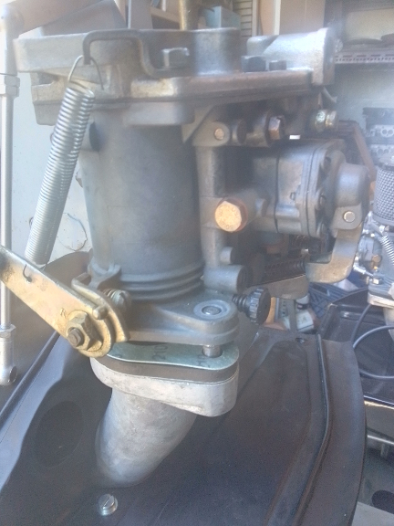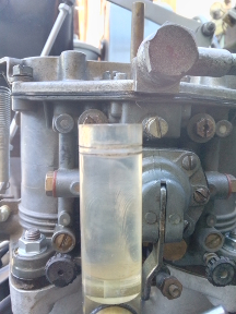 AT RIGHT: A drip can be seen forming on the lower edge of the accelerator pump. While we weren't explicitly charged with doing carburetor repairs, we can't run it in with a fuel leak - too much risk!