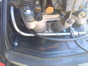When we got back to it, the idle was set pretty well with only one lean-pop from the idle system, and the left-to-right balance was also very good as was. So, we set the linkages to match, right vs left, and then checked the float levels. Both sides were low and corrected, of course.