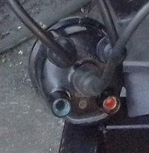 AT RIGHT: Notice anything odd, though? Yes, the alert will notice the corrosion in the distributor cap's hole for cylinder 1's ignition lead! And, yes, cylinder 1's ignition lead is likewise corroded! So, new cap and wires are in order...