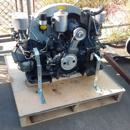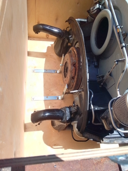 AT RIGHT: This engine as we received it, having just removed the upper portion of the crate. ... That's not how we advise bolting one down as there are easier ways, but it worked fine...
