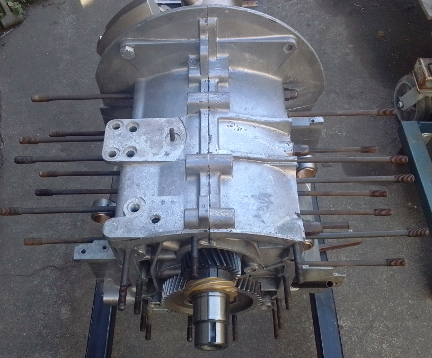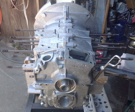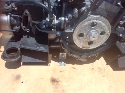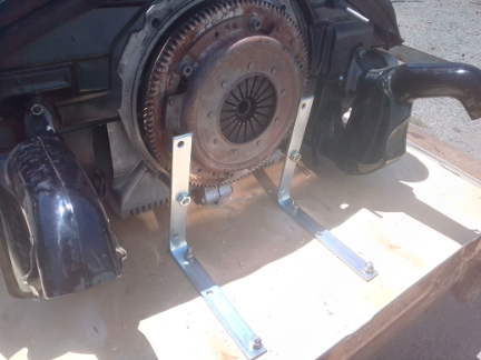 AT RIGHT: Here, the attachment to the case, using the engine to transaxle mounting studs, is the way we do it on this side - simple, and works great! Meanwhile, the engine was in reasonably good form and also fairly clean.