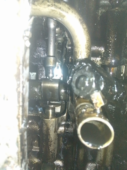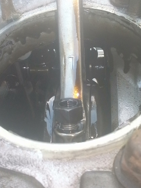 The weird nut-like thing above the oil pickup tube is the rod cap for cylinder 2's rod!