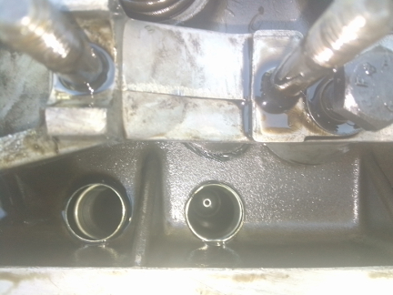 However, as can be seen here, there's carbon over all of the valve seats indicating all the valves have been open when combustion occurred. This can only happen when the valve adjustment is too tight. And, as valve clearance increases when the engine warms, we can conclude rather definitively this engine's maintenance had been ignored.
