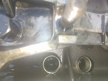 As we can see at right, "alot!" would be accurate. ... To put a number on it, the constriction point was nearly 2mm smaller than the main bore! The solution, obviously, was to drill out these bores to be at least bigger than the M8 studs that have to go through them! And this was, of course, done.