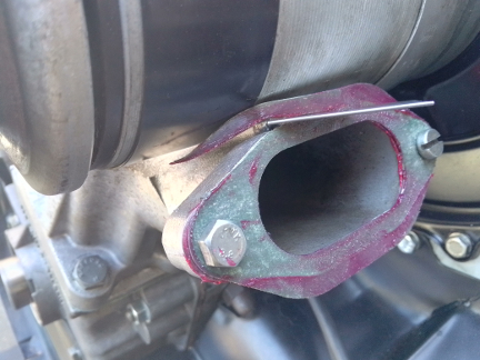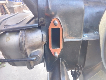 Because the asbestos-free exhaust gaskets we get today don't have the mechanical strength to do the job, we use copper coated with a sealing compound. These are laser cut to the same size as the standard (late type) exhaust gaskets, but still require hand drimming to clear the sheet metal since the ones in the gasket set are actually a bit too large. (We, 356 Coachworks, make these gaskets ourselves, and for our next batch, we're going to make them just a little bit smaller to hopefully eliminate the need for hand trimming!)