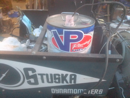 It started right up on the first moment it got fuel and ignition and purred reasonably well. And, we didn't find any leaks, either. We then realized we'd neglected the Dynamometer's battery, so we set it to charging and went off to do other things. We came back to realize we'd left the master switch on on the dyno, so the hour we were charging the battery we were also ticking off an hour of dyno time that we shouldn't have. Oops! Note made in log-book and we proceeded to start it up and tune the carburetors and check the ignition timing in preparations for the actual run-in.