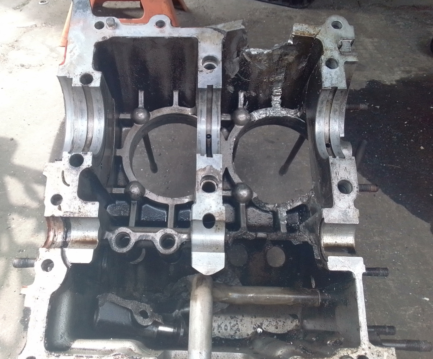 engine came to us with a hole in the case, needing a new pair of main case halves...