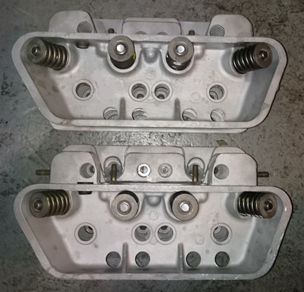 Fitted to these heads are great valves. They're originals, not aftermarket replacement which are all you can get new today. Further, and vitally, the exhaust valves ARE the sodium filled type, which haven't been available new for some years now. Of course, the valves have been checked for length (stretching makes them unworthy), polished, and refaced, so they're effectively perfect too.