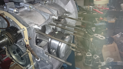 and CylindersIncorrect pistons and cylinders had formerly been fitted to the engine - though perfectly useable modern "big-bore NPR copies" (iron cylinders in 86mm bore). However, these days there are quality sets of "big-bore SC / 912 copies", which I selected instead - new of course.