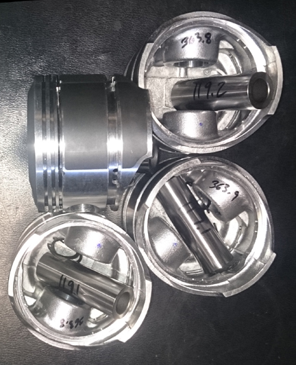 We always check the match pistons to cylinders and match piston weights as a set, and provide any remedial action to correct any errors before installation. For example, by shuffling around the piston pins among the pistons, one can usually improve the matching of piston weights. This set naturally balanced (without removing material) to within 0.1 grams - the official specification is ten grams (10g) - with three of them at the exact same weight (483.0g) and one 0.1g lighter. You can't really ask for it any better than that!