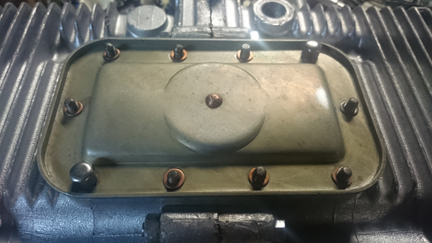 AT RIGHT: This may be the most beautiful original sump plate I've ever seen! The bright spot on the right hand side is just a reflection of light - there's no blemish there!