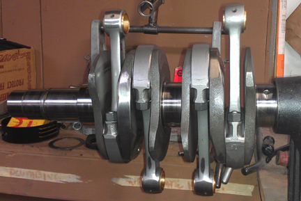 As usual, I mounted the crankshaft up on the ole crankshaft stand and mounted up the rods.