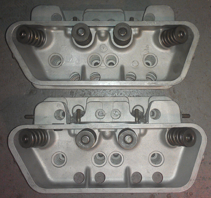 AT RIGHT: The two heads from this engine, combustion chamber side. Here you can note the new valve guides installed.