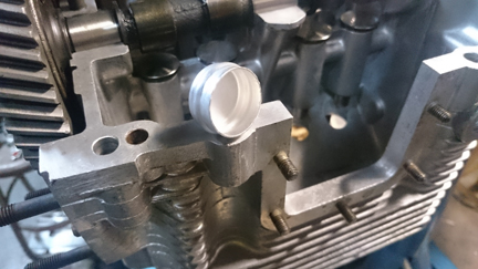 The next step was to consider which head should go on which side, and what any cylinder shimming should be. The shimming that was estimated at the start proved to be wrong, so shimming was adjusted. The compression ratio turned out to be 8.6:1, a small bit lower than the target of (not more than) 9:1 due to the conical cuts in the heads. But it's close enough, will make good power and it also provides a bit of safety considering the relatively poor quality of modern fuels.