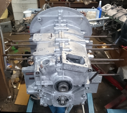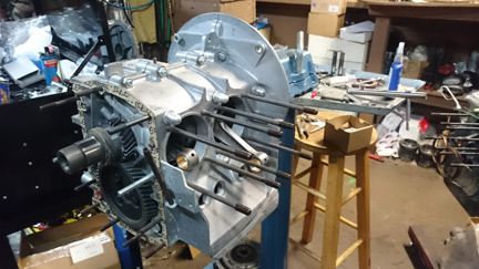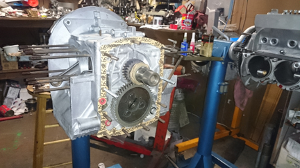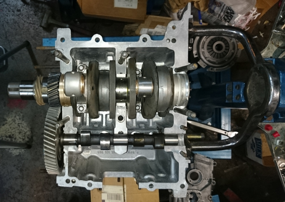 For good or ill, we somehow didn't take any photos as the assembly while it was still on the engine stand, but picked up with the photography as we dismounted it from the engine stand and set the crankshaft end-play during