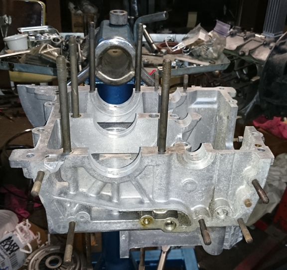 This crankcase just needed a good cleaning and thorough inspection. A few studs were missing. Other than this, the case looked great!
