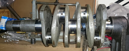 AT RIGHT: This crankshaft had formerly been magnifluxed and re-ground by famous engine builder Harry Pellow, and not used until now. It's been waiting around some 20+ years to be put into service!