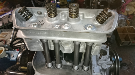 The heads have: New intake guides and several new valve seats, freshly ground valve seats, new valve springs, all freshly re-faced Original Porsche supplied valves. Plus, the heads have just been thoroughly cleaned, threads checked, etc, of course