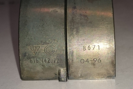 AT RIGHT: I don't usually bother to photograph rod bearings, but since I was missing the usual images of the specific rod set and them mounted on the crank on the crank-stand, ... here's a treet! These are actually genuine Porsche rod bearings - not something seen too often today!