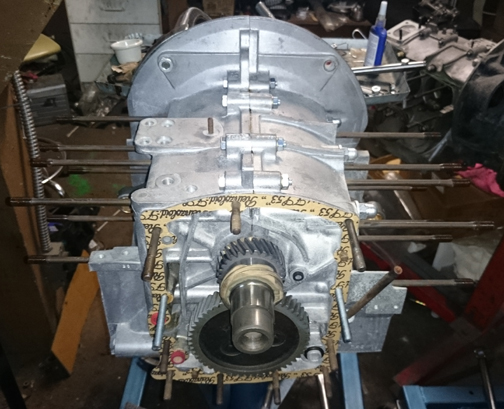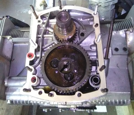 With the cam selected, gear fit, now time to put the case halves together! (Note the other case half was waiting and an image of it is found above in the crankcase preparation section.)