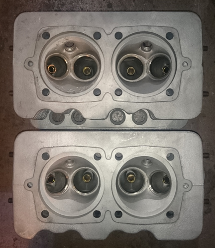 Fitted to these heads are great valves. They're originals, not aftermarket replacement which are all you can get new today. Unfortunately, the exhaust valves are not the sodium filled type, which haven't been available new for some years now. Of course, the valves have been checked for length (stretching makes them unworthy), polished, and refaced, so they're effectively perfect.