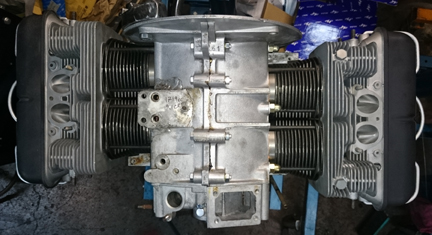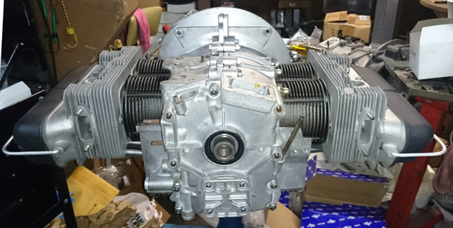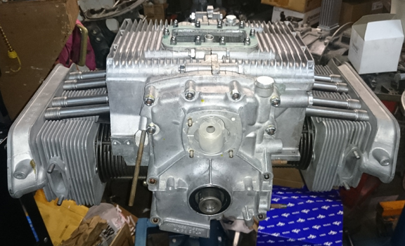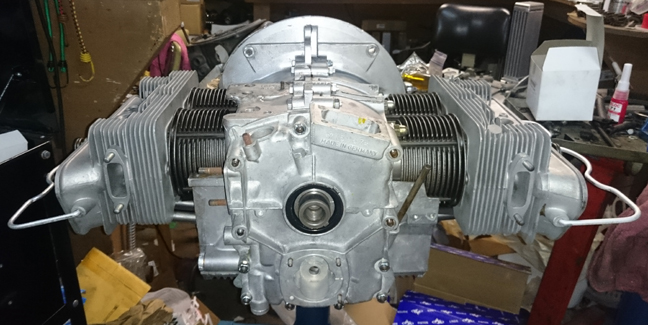 We received this engine among a group of cores bought at the Partsheaven swapmeet in the spring of 2015. Unfortunately, nothing further about this engine's past is known to us. However, during this rebuild it was fitted with new genuine NPR 86mm cylinders, it received new rod and main bearings, all new valve guides, its lifters and valve rockers were refaced, etc., and even the plating of small parts was attended to, such as the wire bails that retain the valve covers and air deflector plates, the nose bearing retaining bolt, the through bolt, and so forth. Nothing was overlooked.