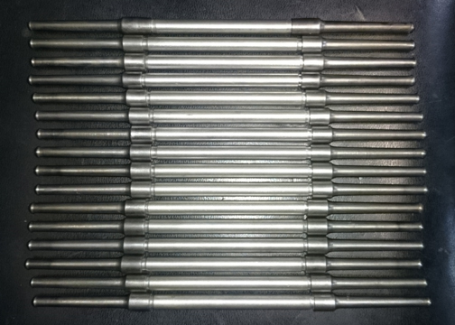 AT RIGHT: Two sets of pushrods, ready to go, one set of which went into this engine. Note that this type, with long steel ends and a short aluminum center, is for use with iron cylinders, like the NPR's fitted here.