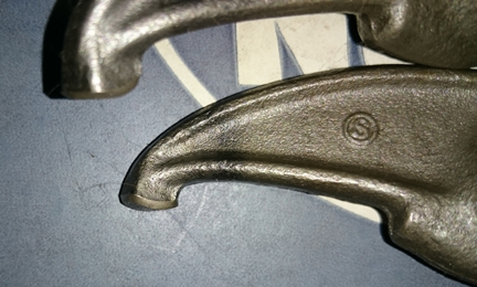 BELOW LEFT: In this closeup of the rockers, you can see that the tips which ride against the valve stems have been not just refaced but a new layer of metal has been added to help reduce wear. In the original, it was only surface hardened, and once worn through, the rockers won't keep adjustment - and keep shedding particles into the oil! However, this "hard-face" material is stronger than the original surface and is considered a permanent solution.