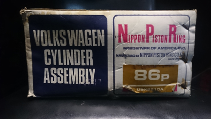 and CylindersWe selected for this engine a set of NIB "NPR" cylinders. (Yes, the box says Volkswagen, but the 86p gives it away.) These are the last of the breed - or, well, we have one more box on the shelf! The NPRs were go-to set for many decades and were always a big-bore solution at 86mm (as opposed to the stock bore of 82.5mm).