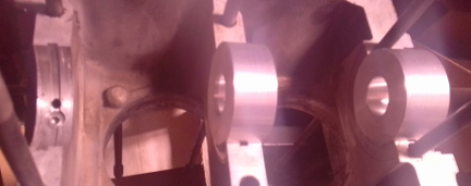 We thought this image might be helpful, showing a # 4 bearing boring bar support installed as a part of saving this very early Porsche crankcase. Note it installed already in this image.